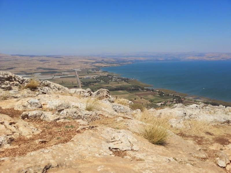 Daar staan we op 181 meter plus en kijken neer op het Meer van Tiberias op meer dan 210 meter min, dus onder zeeniveau, met uitzicht richting Capernaum en de Berg der Zaligsprekingen. Jezus predikte vaak op deze plek en kent u het verhaal dat Hij wegliep, nadat men hem van de rotsen wilde gooien. Veel is hier gepasseerd in de geschiedenis en er zijn opgravingen van een Synagoge. Voor de wandelaars nog mooier, want het “Jesus-Trail” passert dit prachtige panorama uitzicht.