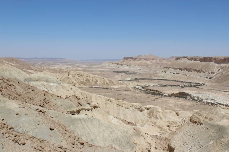 Ein betekent eigenlijk “lente of waterbron” en Avdat de naburige stad. Ondanks de behoorlijk hoge temperaturen in deze regio (ik maakte daar eens 50 graden mee) is het in deze kloof, waar het schaduwrijk is, behaaglijk om te wandelen. Ook daar is zelfs buiten het regenseizoen, een beekje en een waterval met daaronder een poel. Ook hier zien we de vele Steenbokken, die tegen de rotsen opklauteren. Deze prachtige kloof loopt uit bij Sde Boqer in de Woestijn Zin, of de Grote Wadi of de Grote Rivierbedding van 120 Kilometer in de Negev. In de verre geschiedenis kwam het volk met Korach, Datan en Abiram in opstand tegen Mozes (lees Num 14 en Num 16). Ook het Nieuwe Testament spreekt over een opstand in Zin (Hebr. 3:8). Vanaf deze plek vertrokken de twaalf verspieders voor een verkenningstocht door Kanaän. Ten slotte komt de straf van God, dat Het Volk 38 jaar in dit gebied moet rondtrekken, nadat Het Volk de Heer afwees (Num.14:11).