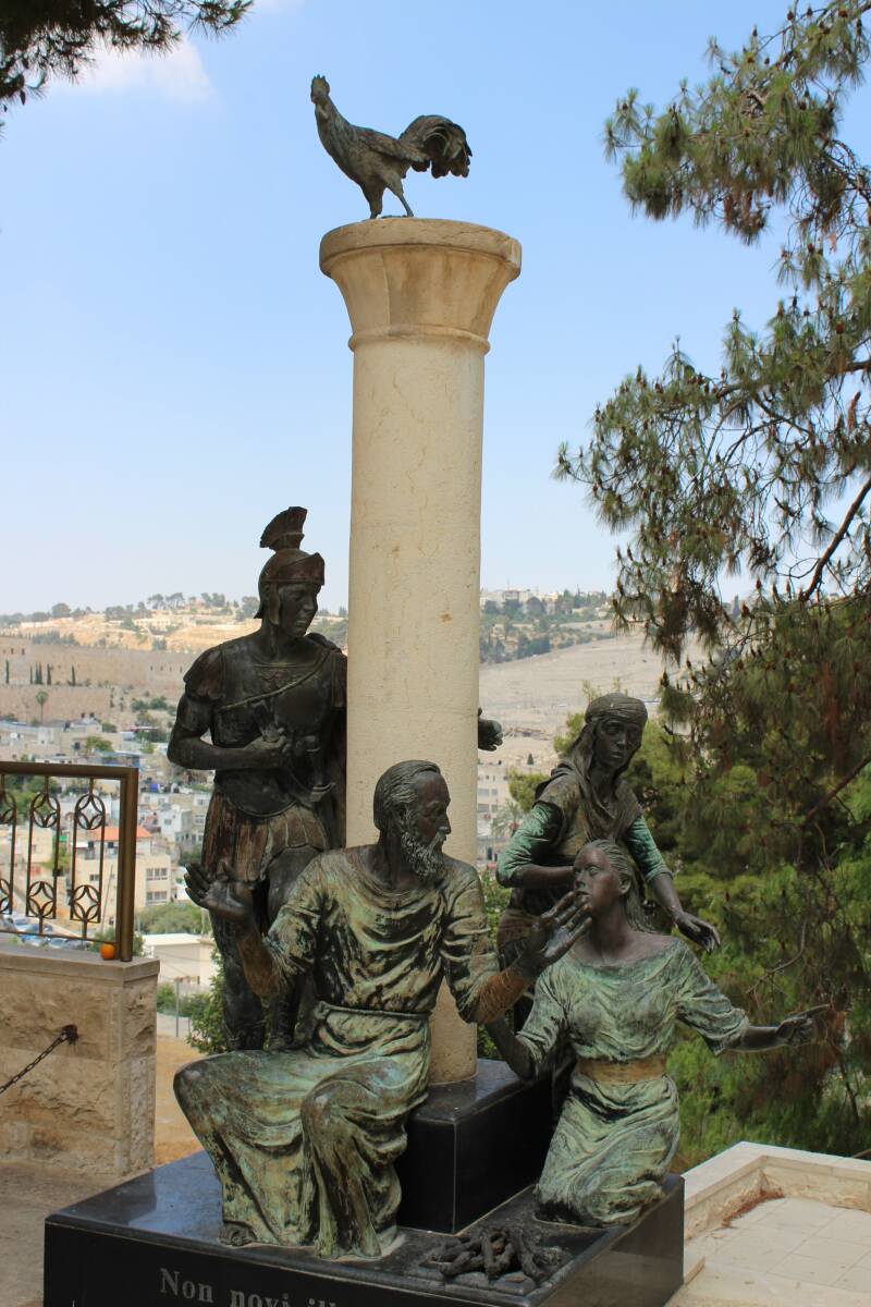 Even buiten de bestaande stadsmuren van Jeruzalem en niet ver van de Berg Zion met de “Zaal van het Laatste Avondmaal” en daaronder een Synagoge met het “Graf van Koning David” is een prachtige Rooms Katholieke Kerk waar een trap begint door het Kydrondal naar de Olijfberg. Deze kerk is gebouwd op zowel Byzantijnse restanten en mozaïeken als op veel oudere restanten van een woning met kelders, mogelijk een kerker. Kijkend naar de trap naar het Kydrondal en de staat van de kelder die van boven, als een put, zichtbaar is, moet dit mogelijk een gevangenis zijn geweest onder een luxe villa, want in de tijd van Jezus was dit een luxe buitenwijk, mogelijk een villawijk. Gezien de gaten die in de muren zijn uitgehouden, moeten deze in die tijd ketens aan bevestigd zijn geweest. Deze dienden dus echt niet voor niets. Men denkt dan ook dat dit mogelijk het huis van Kajafas is geweest en de vertaling van Petrus in Galligantu is dus “Petrus in het Hanengekraai”!